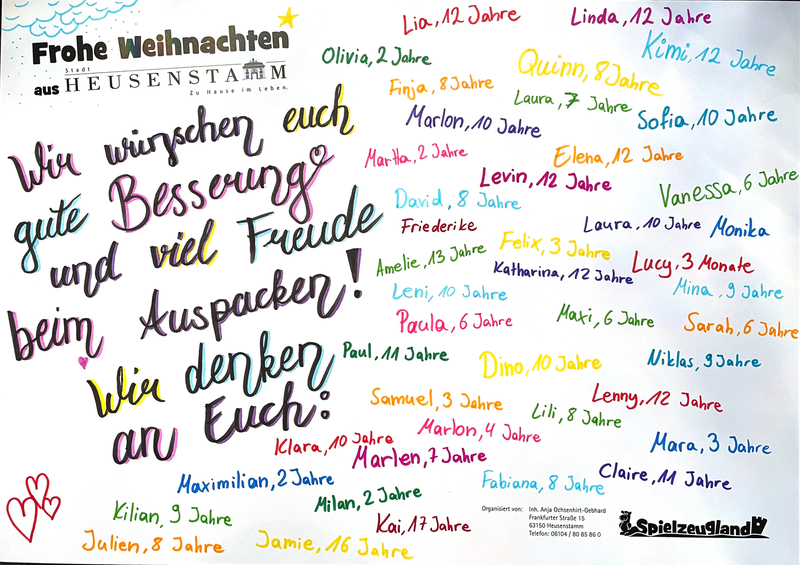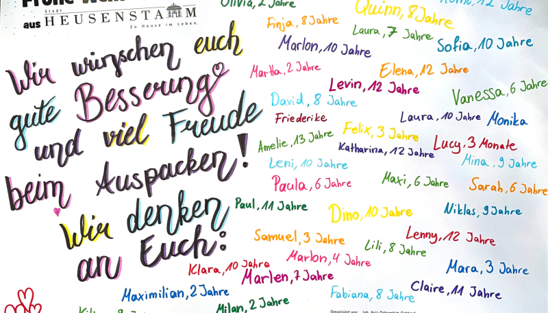 Zudem haben viele Kinder ihre Genesungswünsche übermittelt, dies haben wir mit einem Plakat zum Ausdruck gebracht.
